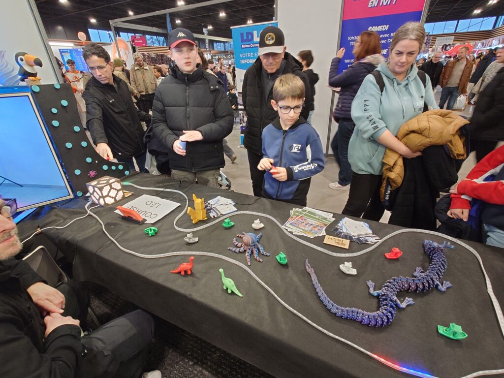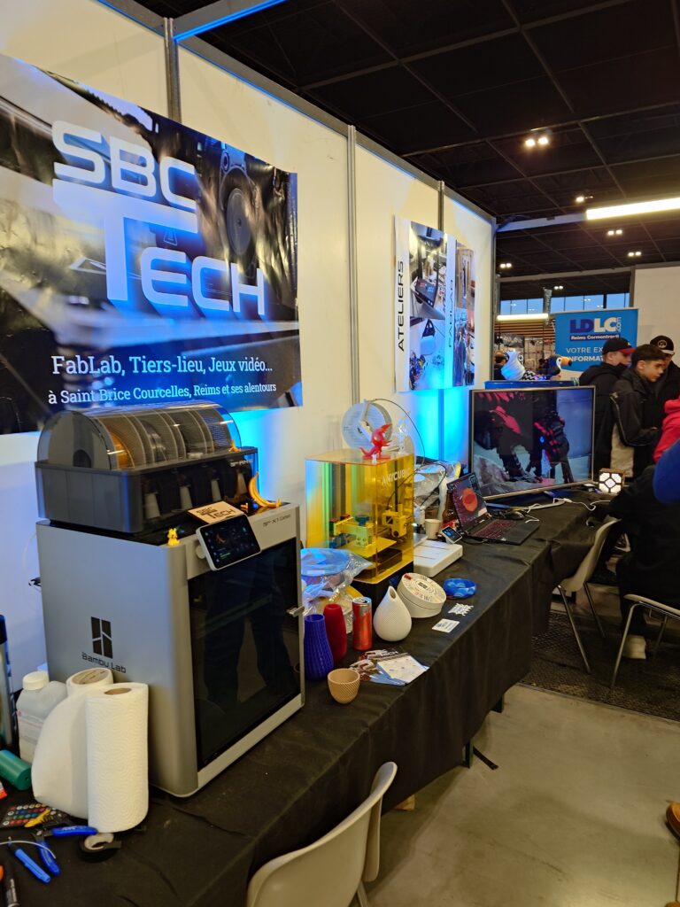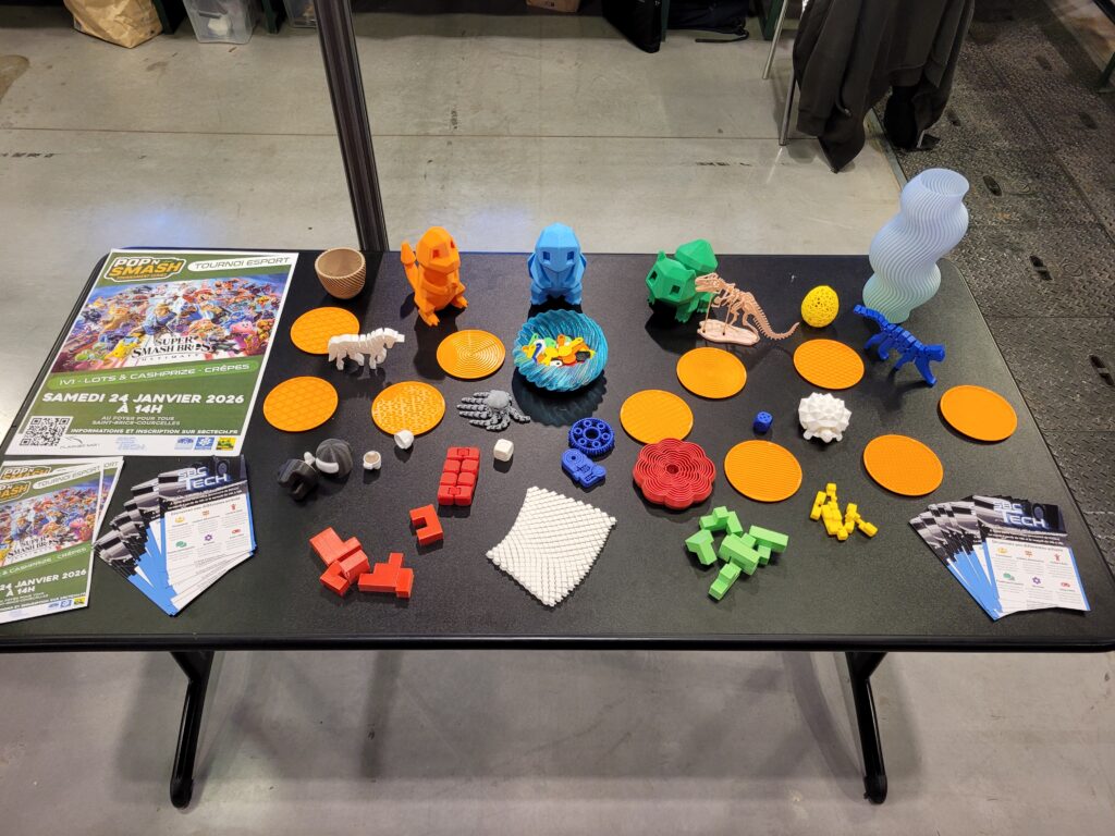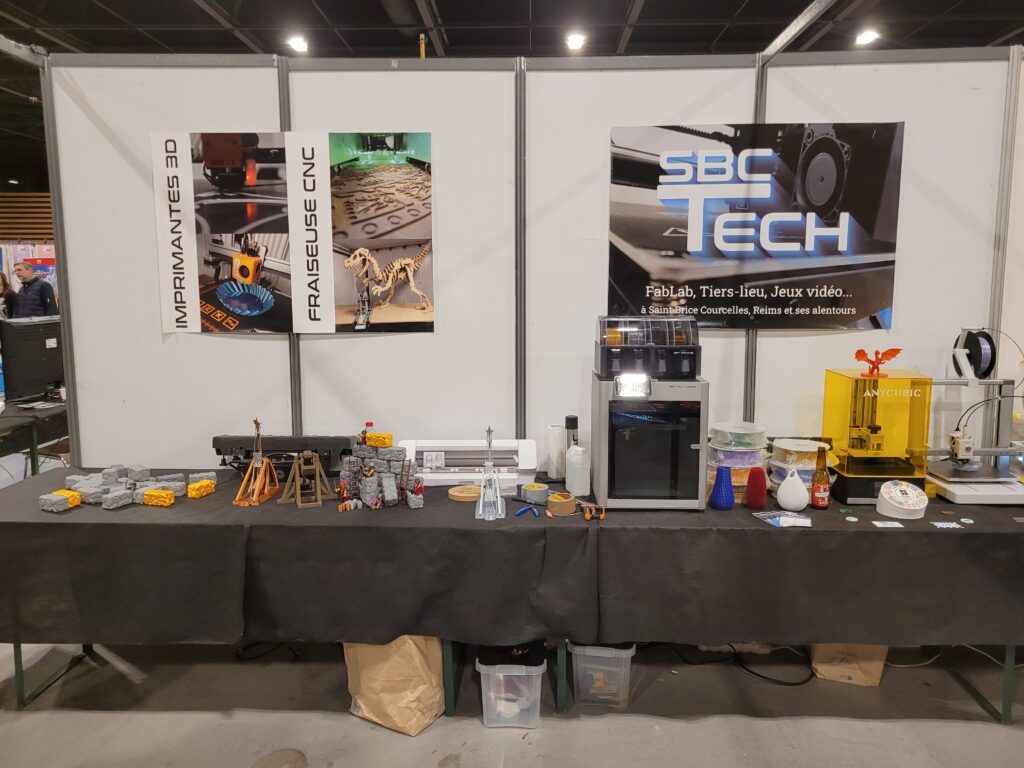 Coté FabLab, les imprimantes 3D, résines, découpeuses vinyles et plusieurs des projets réalisés au sein du Centre Culturel de Saint-Brice Courcelles étaient présentés par plusieurs de nos adhérents. De plus, nous y avons proposé une activité de tir aux trébuchets, le tout imprimé en 3D !
